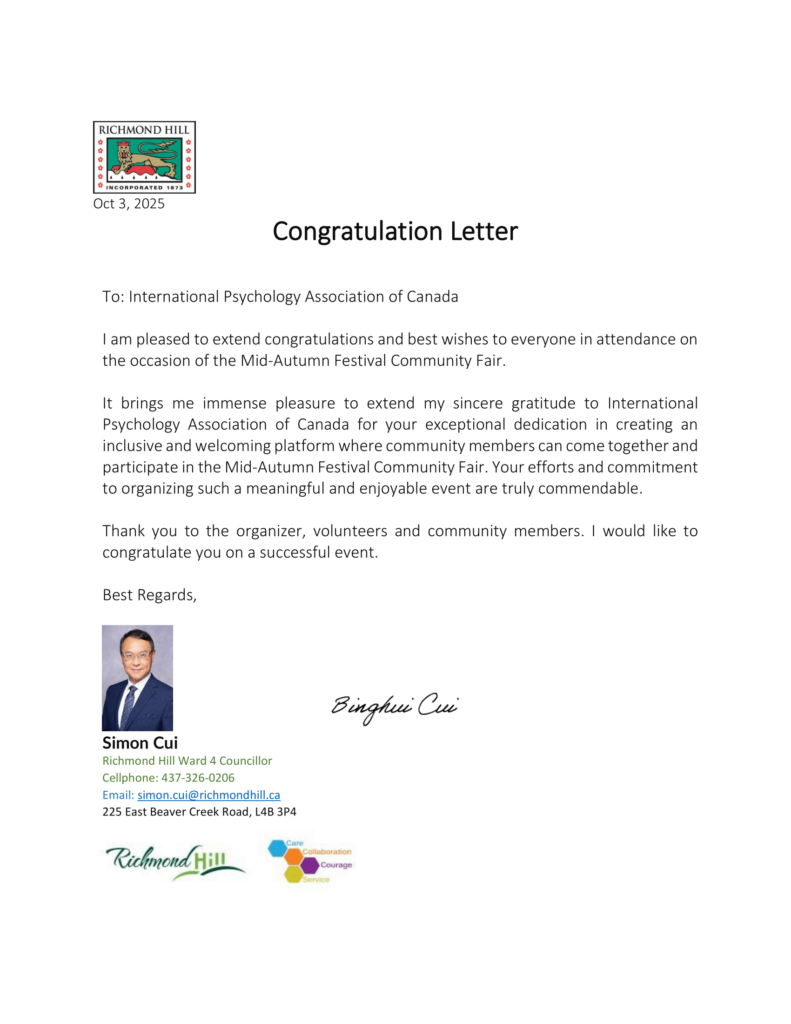 市议员Simon Cui亦到场对活动表示高度支持,肯定了IPAC在促进文化交流和心理健康意识方面的努力。